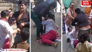 • सरेराह पिटाई: बहस बढ़ते ही पति अपना आपा खो बैठा और राहगीरों की परवाह किए बिना अपनी पत्नी पर थप्पड़ और घूंसे बरसाने लगा।