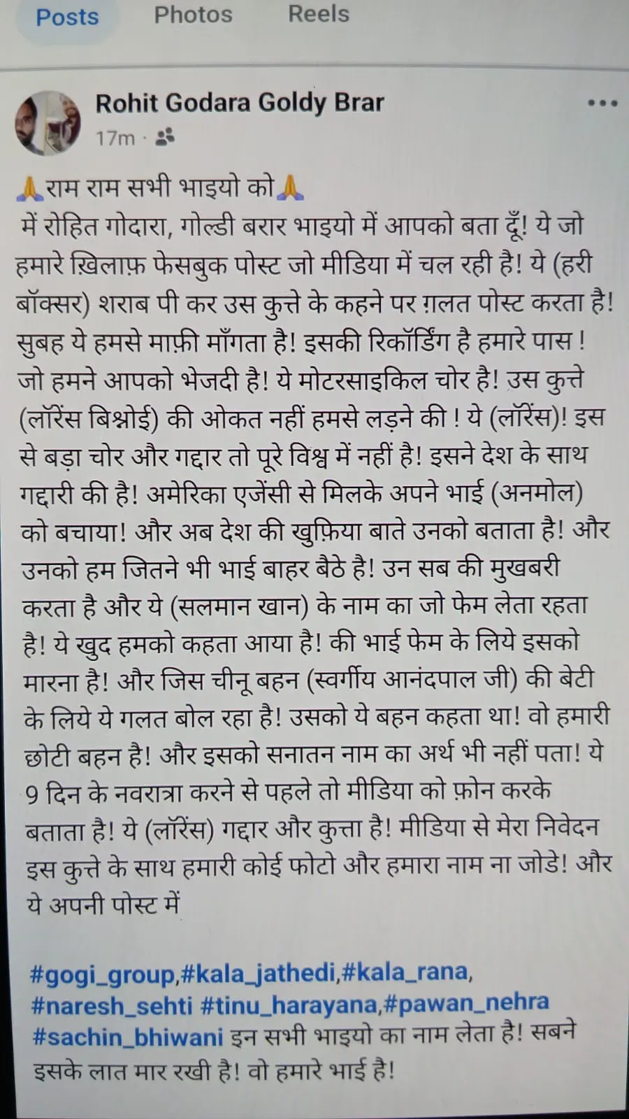 Rohit Godara Statement: विदेश में अपने ठिकानों से सक्रिय गैंगस्टर रोहित गोदारा ने लॉरेंस बिश्नोई पर हमला बोला है। रोहित गोदारा ने ...